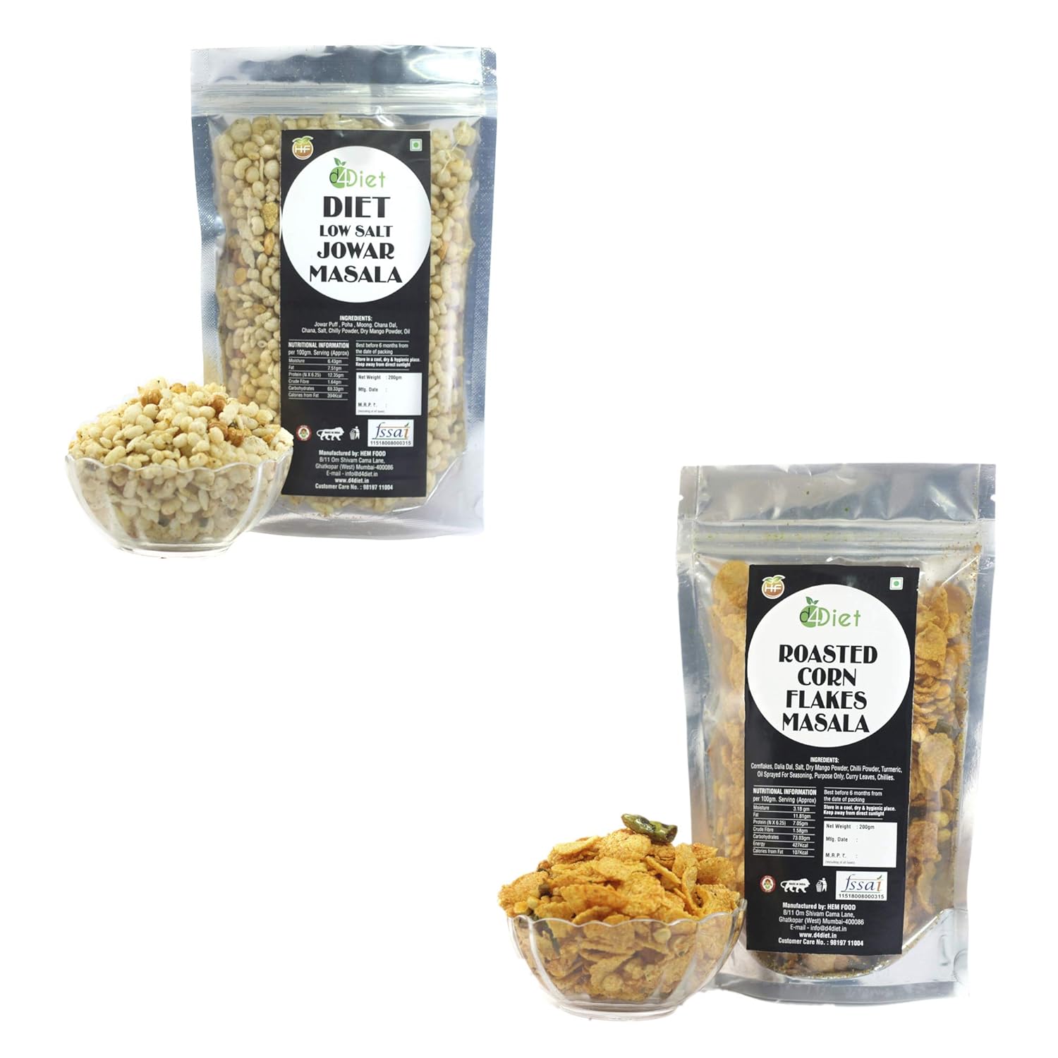 D4diet Low Salt Jowar Masala Roasted Cornflakes Masala 400 Gram